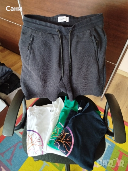 Късите панталони също са с много хубав цвят, тъмно сиво- синьо , не са избелели- подарък.