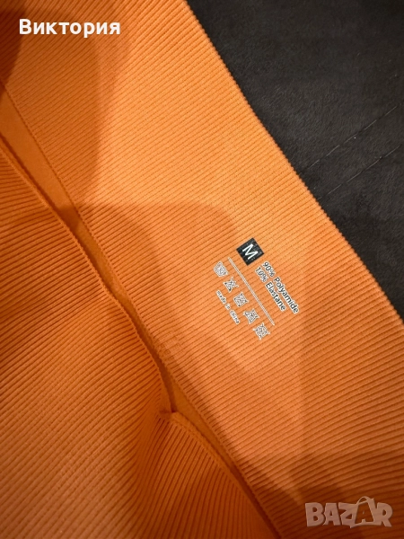 Нов оранжев комплект от топ и клин. Материята е рипс. Размер M.