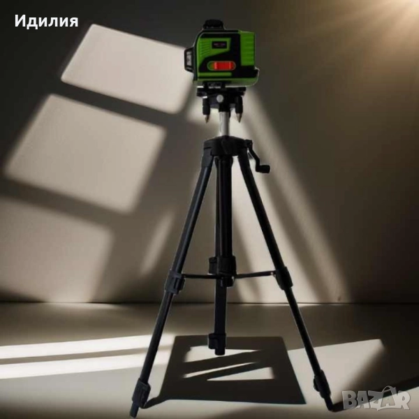 4D Лазерен Нивелир с 16 Линии (Четири Точков), Самонивелиращ се, със Зелен Лазер с тринога