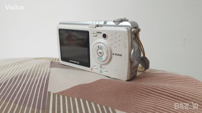 Olympus ,който е пълен комплект готов за рабата,компактен,лек и с лесно боравене с менюто фотоапарат за начинаещи и тези които искат да запазят спомените си в снимки. Менюто освен на английскии,руски има и други езици. Изключително бърз автофокус съчетан с 5МрХ матрица и светлосилен обектив 38–114 mm mm с 3х оптично увеличение прави невероятни снимки с наситена цветност и нюанси на изображението. Светкавицата работи отлично и осигурява направата на качествени снимки и в стайни помещения. Към фотоапарата предлагам - оригинална батерия,карта памет за 420 снимки,многофункционален картов четец /чете и други формати карти/за прехвърляне на данни към компютър,