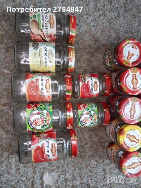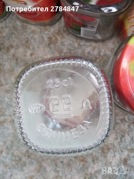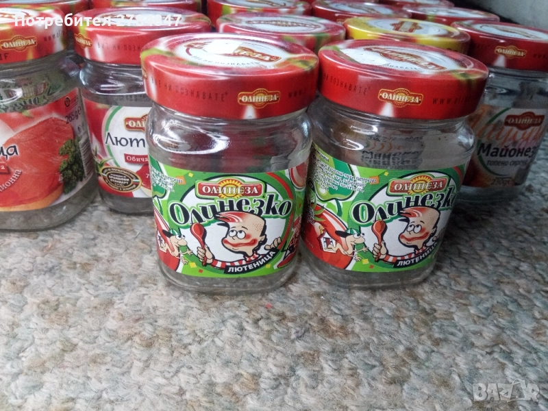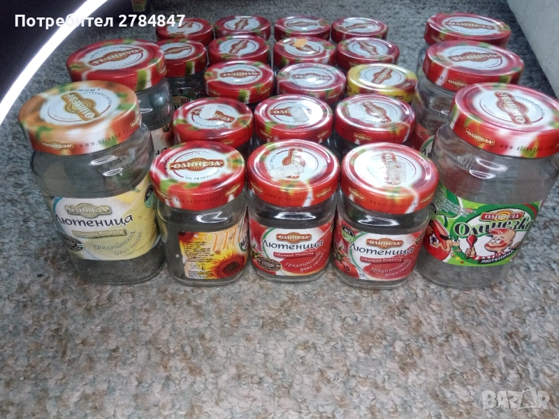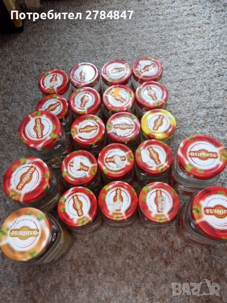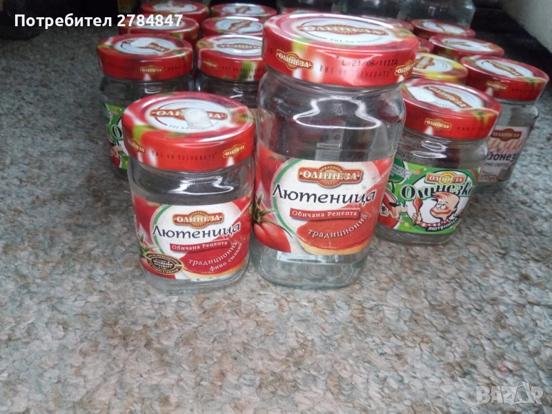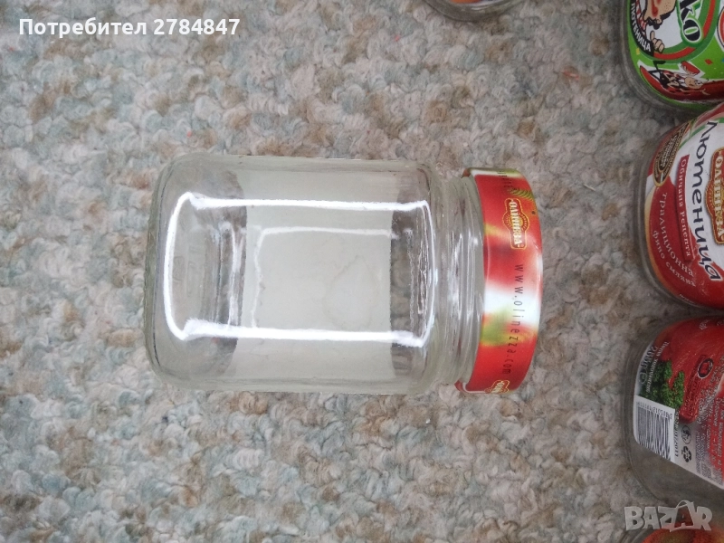 Лот буркани Олинеза 5 буркана от 520 грама, 500 милилитра. Размери: височина 14 см, диаметър на отвора 6,5 см, диаметър на дъното 7 см. 17 буркана от 265 грама, 250 милилитра. Размери: височина 9,5 см, диаметър на отвора 5,5 см, диаметър на дъното 6,3 см. Цена за всички буркани 15 лв.