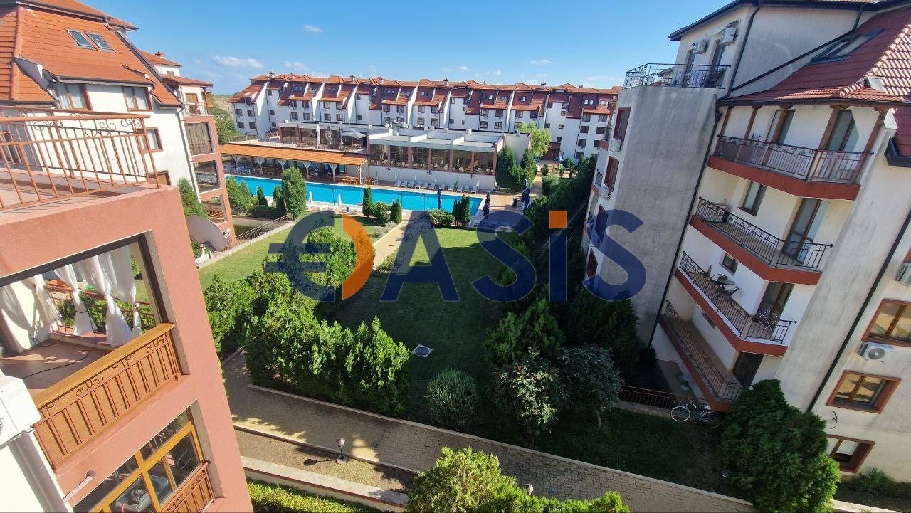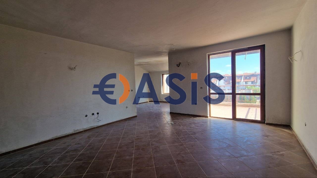 Разпределение: голяма всекидневна с обособена кухненска част, две спални, две бани с тоалетни, просторна тераса. Към терасата има два изхода-от дневната и от кухненската зона. Изглед от терасата към басейна и зелената територия на комплекса. Една от спалните със самостоятелен санитарен възел. Апартаментът е нов, просторен, светъл с добро разпределение. Предлага се за продажба с ремонт от строителя.