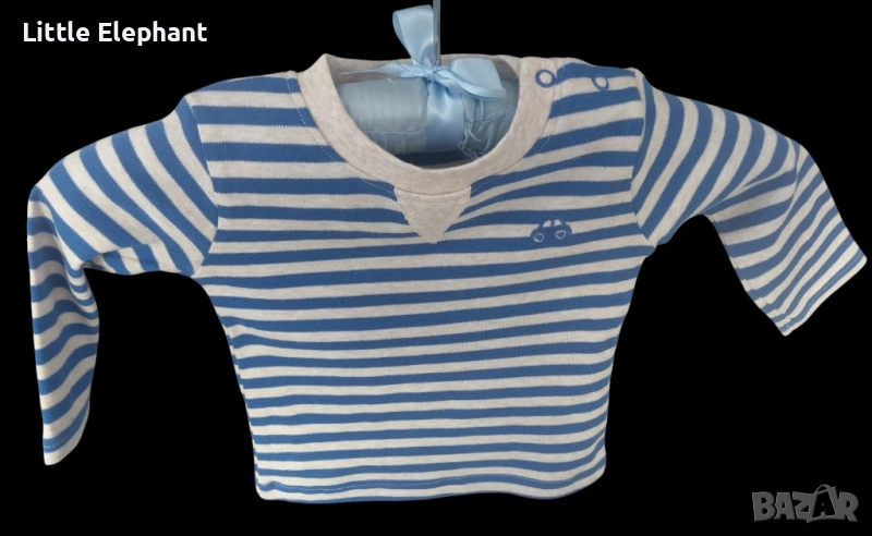 Блузка с дълъг ръкав за 12-18 мес момченце синьо и бежово райе"Tiny little car",Англия/нова → Обява 51711348