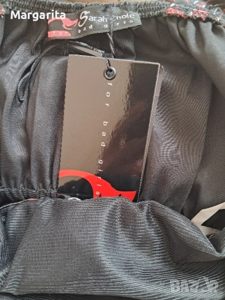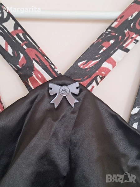 балон. Сатен с подплата. С ластик в кръста и на гърба. Според мен отговаря на размер М. Гръдна Нова с етикет.
