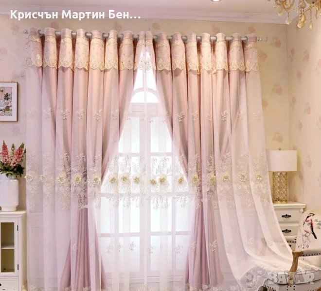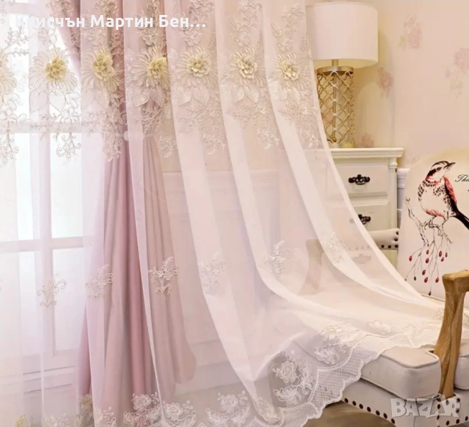 Елегантна розова флоарна Бродирана завеса с гомет топ- защита термоизолация, машинно пране полиестер за всекидневна или спалня. Дължина 250см-ширина 100см.