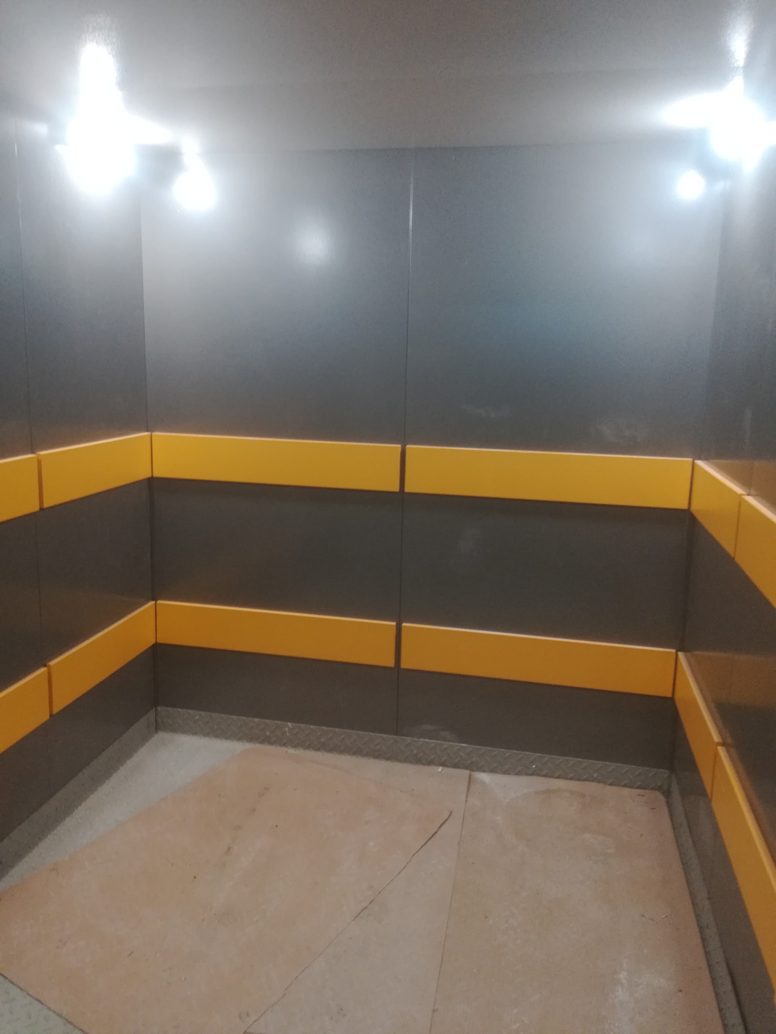 Има товарен асансьор с 1,5 тона товароподемност и размери 2м/2м/2м.