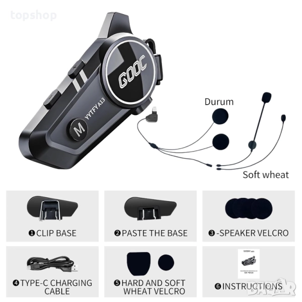 интерком за каска YYTFY Мотоциклетни Bluetooth слушалки с гласов асистент, интерком слушалки за каска, IP67 водоустойчиви/1500mAh живот на батерията, високоговорители за каска, подходящи за повечето каски и CVC+DSP шумопотискане.