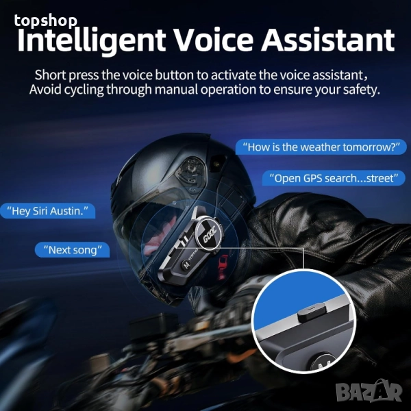 Нов интерком за каска YYTFY Мотоциклетни Bluetooth слушалки с гласов асистент, интерком слушалки...