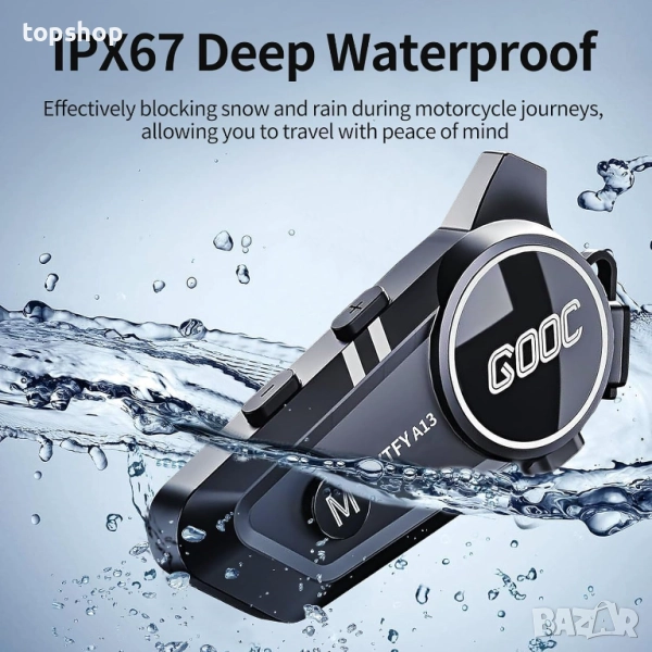 [Водоустойчиви слушалки за мотоциклет IPX67] Bluetooth високоговорителите за каска използват водоустойчива технология IPX67 и нано покритие, което може да предпази слушалките при тежки метеорологични условия като бури, дъжд и сняг. Bluetooth слушалките могат да се носят за колоездене, катерене и каране на ски, без да се притеснявате за прах или повреди от вода на слушалките за мотоциклет.