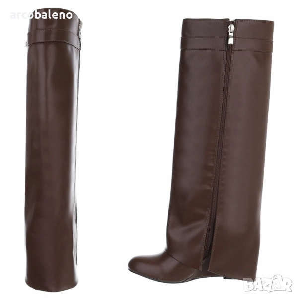 Нека вашият стил блесне с тези уникални ботуши над коляното! Идеални за жени, които следят модата, тези ботуши предлагат не само привличащ вниманието дизайн, но и изключителен комфорт. Изработени от висококачествени и издръжливи материали, те гарантират дълготрайно носене. Гладката повърхност и впечатляващият силует подчертават вашия индивидуален почерк за всеки повод. Независимо дали става въпрос за вълнуваща вечер в града или за модерен ежедневен тоалет, тези ботуши са идеални за студения сезон. Удобният блоков ток осигурява оптимална стабилност и усещане за лекота, а елегантното закопчаване с цип е не само практично, но и добавя естетическо докосване. Комбинирайте ги с рокли или тесни дънки и нека вашият външен вид блесне. Ако търсите впечатляваща дреха, която съчетава комфорт и стил, тези ботуши са перфектният избор за вас!