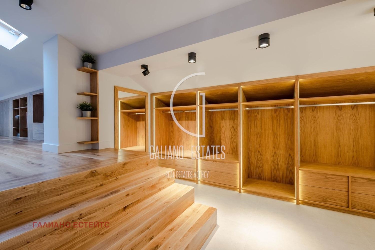 Разпределение: Дневна с трапезария, кухня, тоалетна, 4 спални с дрешник към всяка, 3 бани.