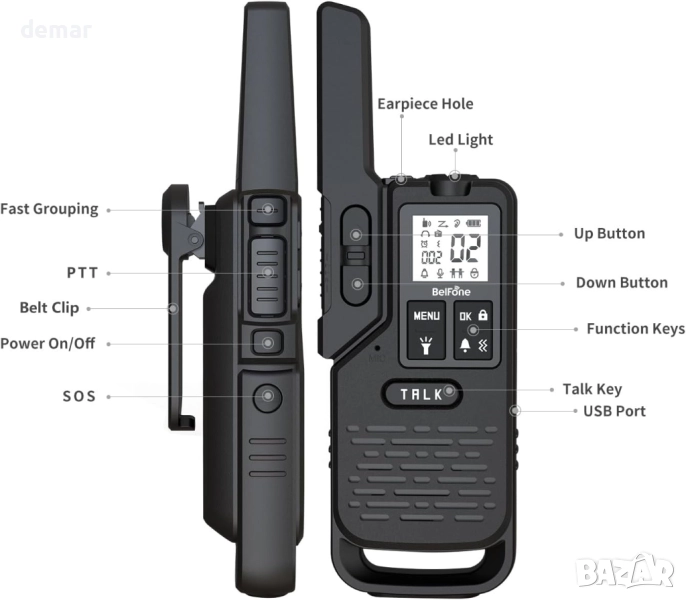 BelFone OG200 уоки-токи, обхват 8 км, 20 канала, IP54, 1 брой