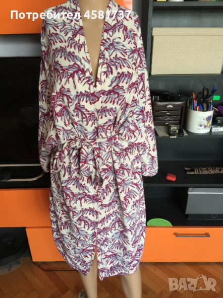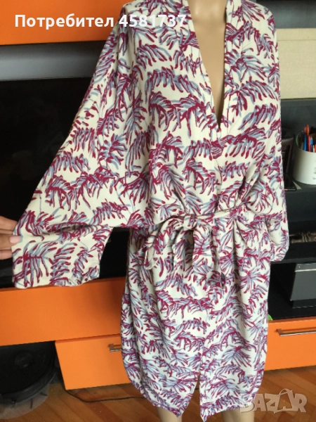 Много красива туника, тип халат на скандинавския бранд Samsøe Samsøe. С колан. Много стилно се съчетава с бански, чийто цвят е в една от тоналностите на туниката.