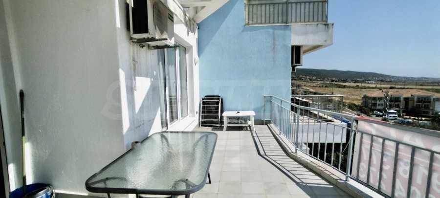Разпределение: антре, дневна с кухня и трапезария, една спалня, баня с тоалетна, две тераси. Терасите са с изглед към хълмовете Стара планина, към басейна и вътрешния двор комплекса, към залива на Слънчев бряг.