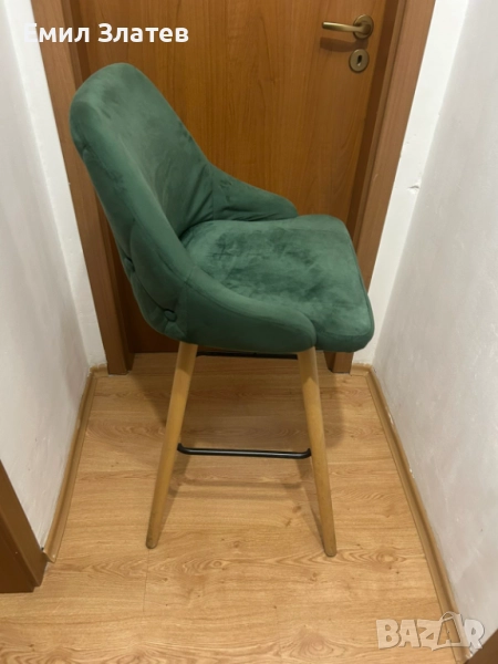 Седалката и облегалката, покрити с мека на допир кадифена тапицерия, ще ви предложат комфорт при седене. С краката от масивна букова дървесина и черна рамка с прахово покритие, този стол е стабилен и издръжлив. Вградената поставка за крака допринася за допълнителната опора при седене.