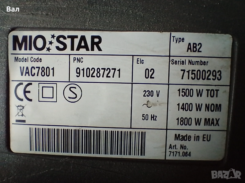 Прахосмукачка MIO STAR Model VAC7801 1800 вата
