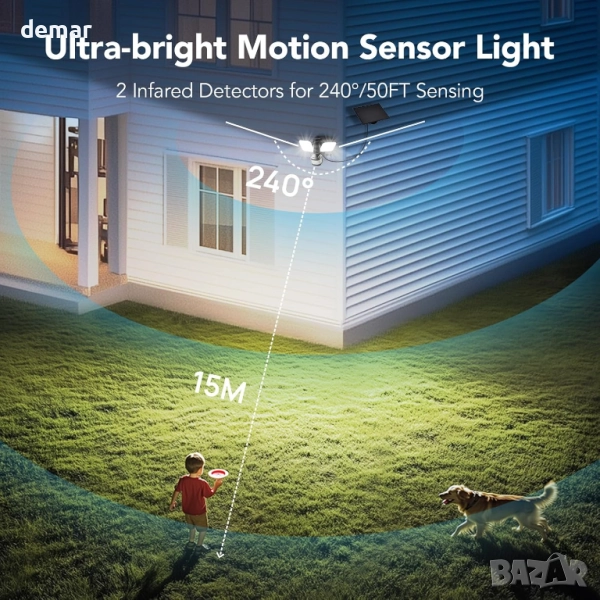 Соларна охранителна лампа Linkind,двойно захранване,сензор за движение