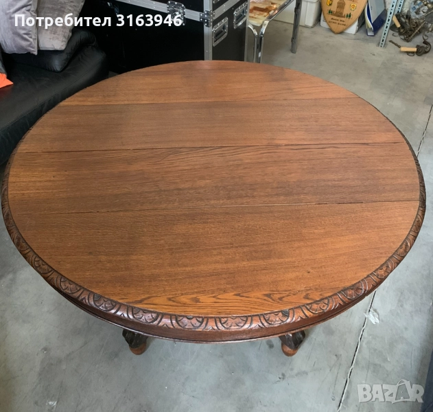 Антична Кръгла Маса от Масивно Дърво с Богата Резба
