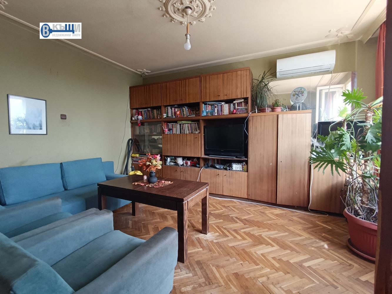 Недвижими имоти ВКЪЩИ Ви предлага многостаен апартамент в кв. Акация. Жилището е с изложение север - юг, разположено на първи висок етаж над гаражи. Площта от 120кв.м. е разпределена между просторна всекидневна, кухня с трапезария, три спални, баня, тоалетна и две тераси. Една от трите спални е оборудвана, като втора всекидневна с кухненски бокс. Отоплението и охлаждането се извършват посредством климатици, като сградата позволява и отопление на газ. Настилките в помещенията, с изключение на кухнята са от естествен дъбов паркет. Прилежащи към имота са таванско помещение с площ от 22кв.м. и мазе с площ от 7кв.м.