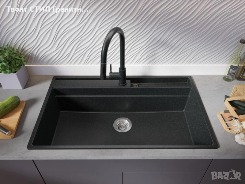 Графитна гранитна кухненска мивка Осло 90 Pocket 880x530 мм → Обява 51719514