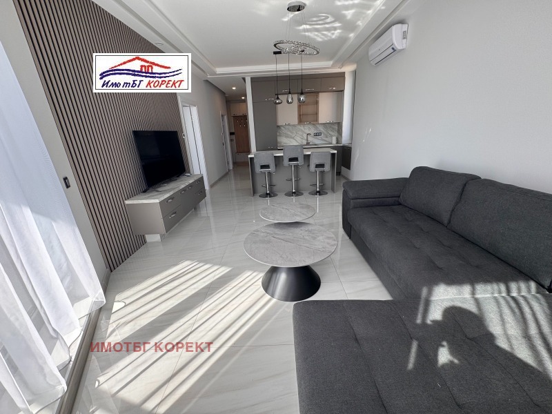 Имотът е със следното разпределение: Просторна дневна с трапезария и отворена кухня, две спални, панорамна тераса и баня с тоалетна.