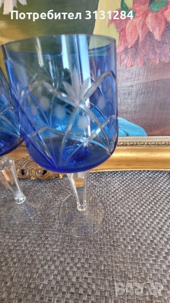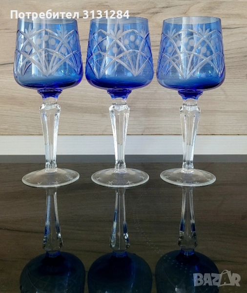 Три красиви кристалри сини чаши от старата немска фабрика Nachtmann. Състояние перфектно!