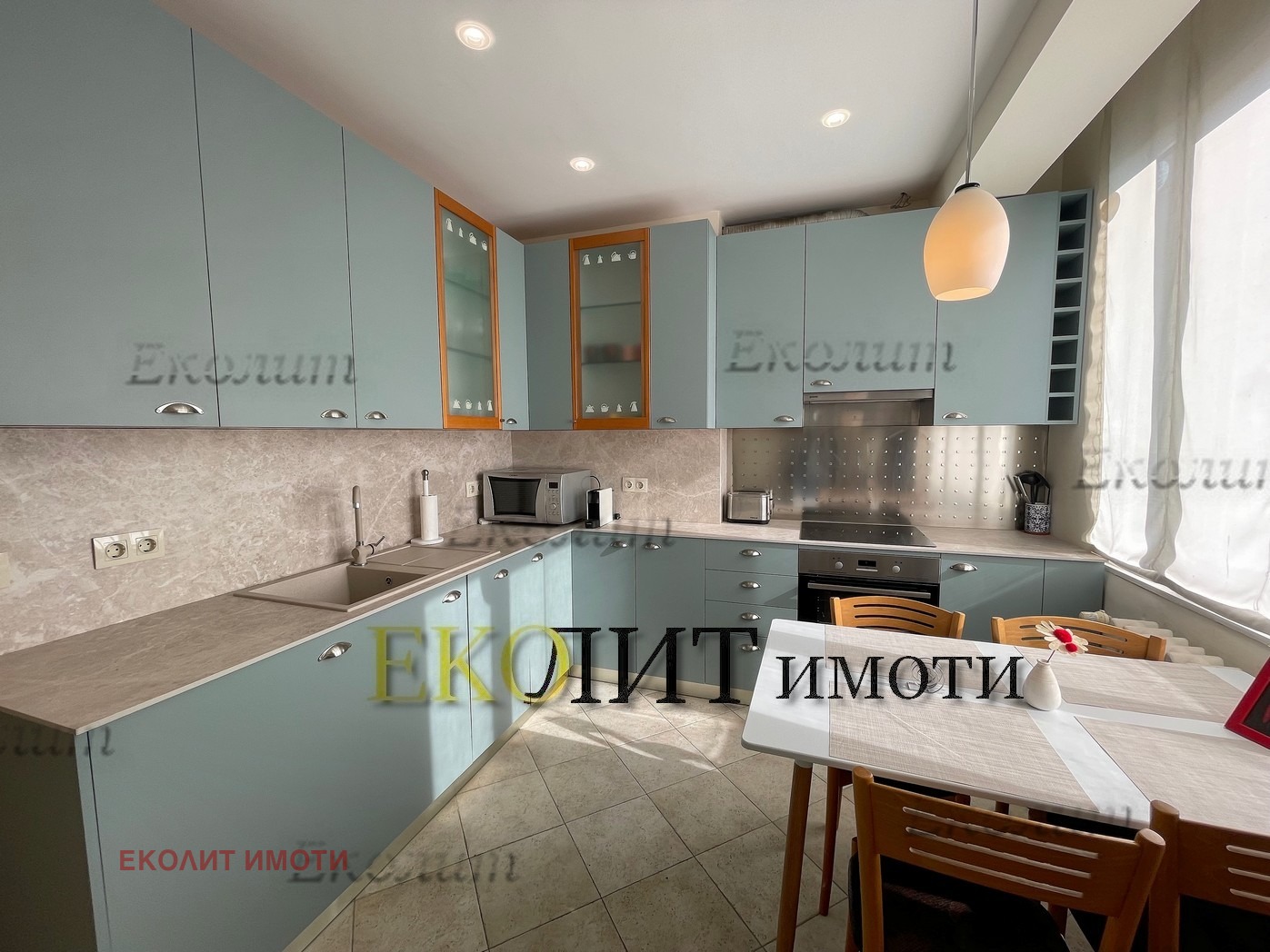 Апартаментът се откроява с панорамни гледки и голяма естествена осветеност, ТЕЦ и климатизация.