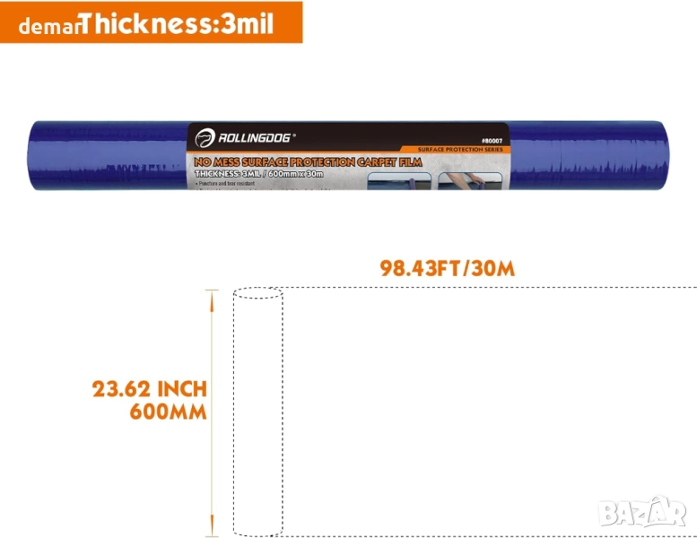 ROLLINGDOG Протектор за килими - Защитно фолио за килими (600 мм * 30 м)