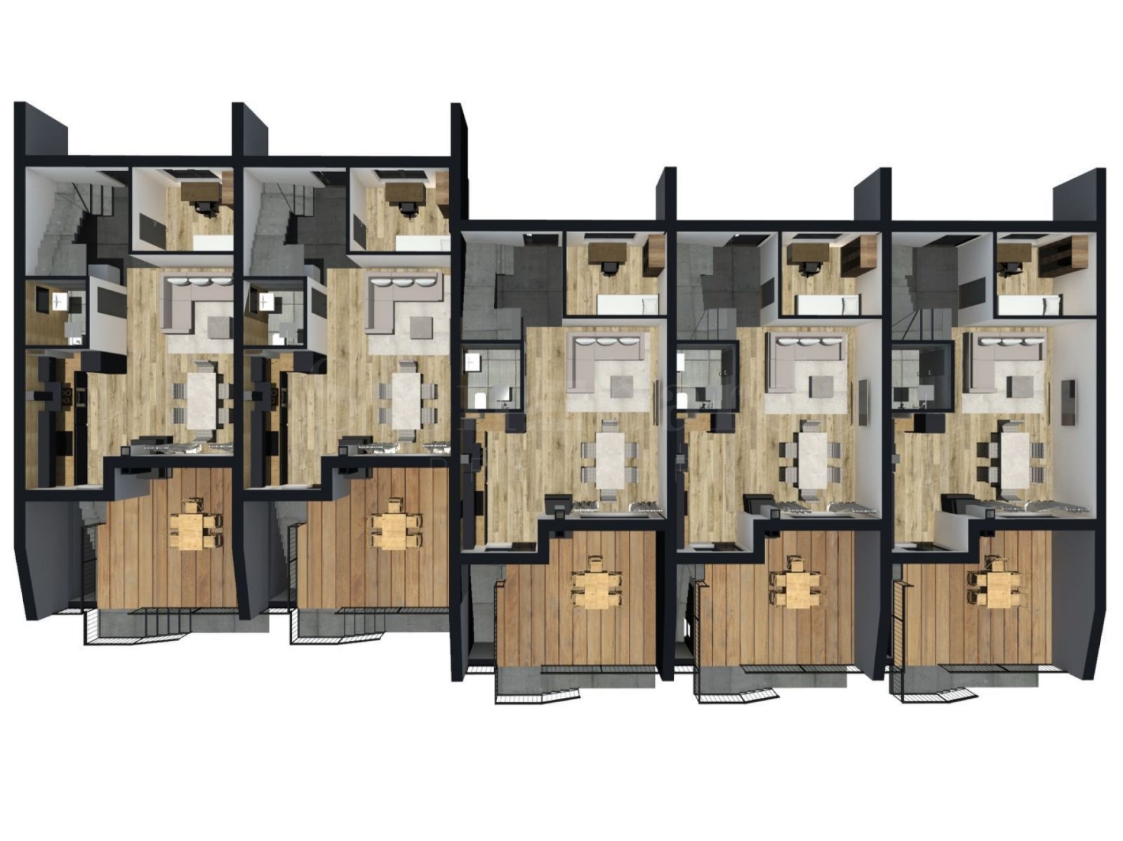 Собствен двор: Площите на дворовете варират от 43 до 167 кв. м, предоставяйки ви пространство за релакс и забавления.
