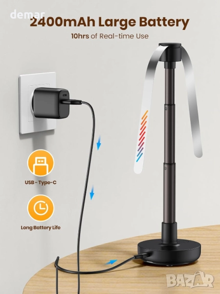TOPK 3 броя акумулаторни вентилатори за маса, захранвани от USB, до 10 часа работа