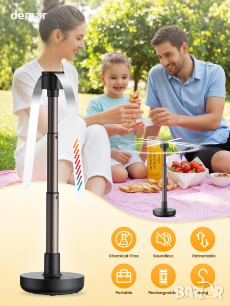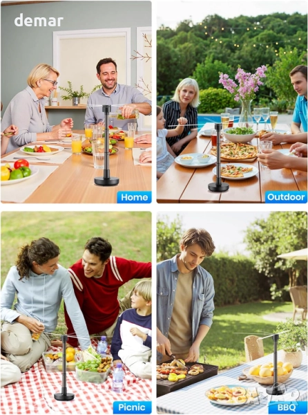 Този вентилатор за храна помага за запазване на свежестта на ястията и напитките, като същевременно предпазва от нежелани елементи, което го прави идеален за семейно хранене на закрито или на открито. Работи с акумулаторна батерия от 2400 mAh, която издържа до 20 часа с едно зареждане, с бързо 2,5-часово презареждане чрез USB Type-C от различни източници на захранване. Телескопичният му дизайн се регулира от 15 до 27 сантиметра, предлагайки гъвкава употреба, като същевременно остава компактен и преносим за барбекюта, пикници, партита, събирания край басейна и къмпинг. Остриетата имат специален холографски модел, който пречупва слънчевата светлина, помагайки за естествено предотвратяване на смущения.