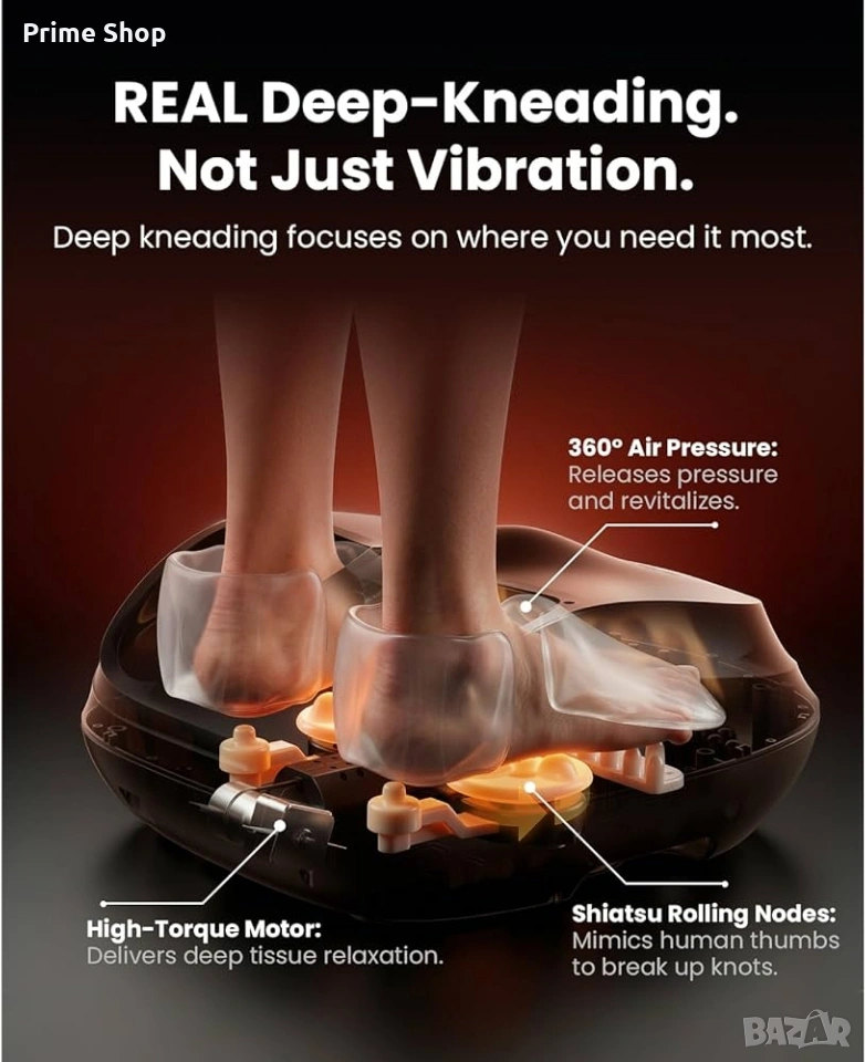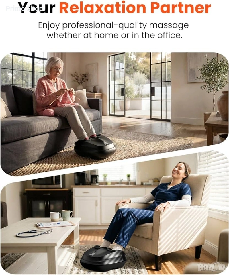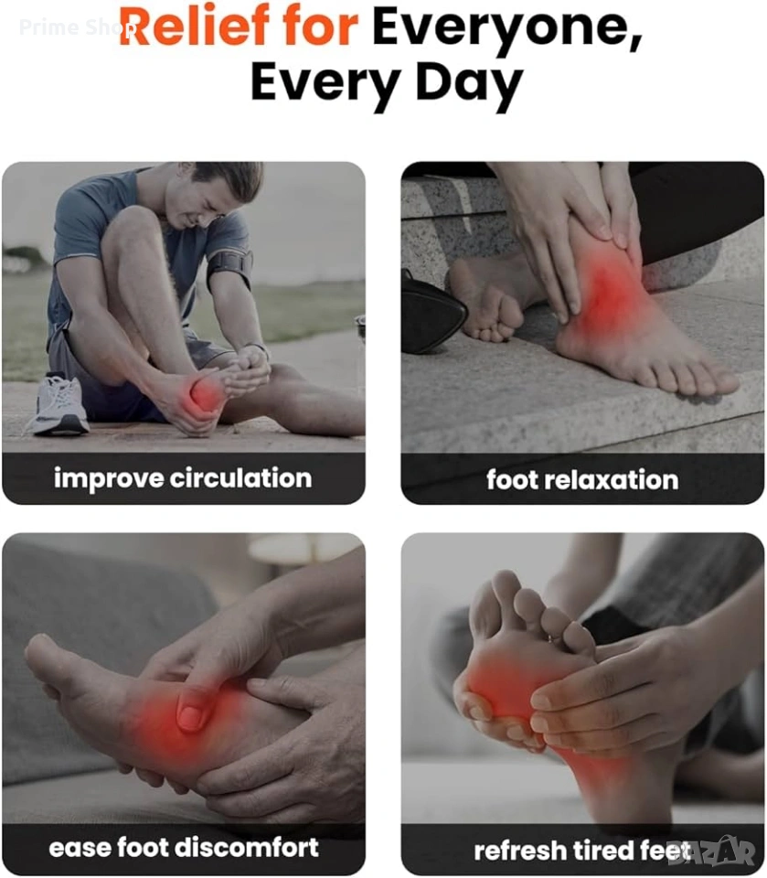 масажор за крака, електрически масажор, шиацу масажор, Bob and Brad, масаж на стъпала, въздушна компресия, масажор с нагряване, релаксиращ масаж, подобряване на кръвообращението, плантарна фасциит, уред за масаж, здраве и релакс