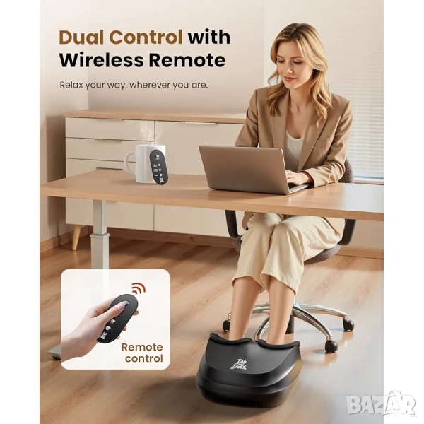 Удобно управление за безпроблемна употреба: масажорът за крака е оборудван с дистанционно управление и бутони отгоре, можете да изберете предпочитания от вас метод на управление за максимално удобство. Привлекателният външен вид го прави красив подарък за вашите близки по различни поводи, като Коледа, Деня на благодарността, Деня на бащата, Деня на майката, рождени дни или годишнини. Подходящ е за крака с размер до ЕС 46. Не е подходящ за хора, които са много чувствителни към натиск и размачкване.