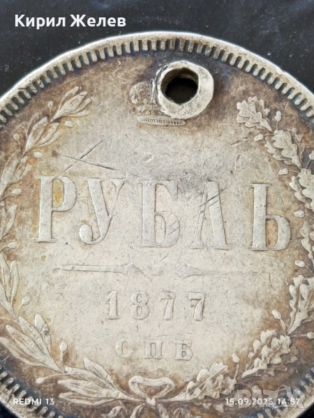 Сребърна монета Рубла 1877г. Руска Империя уникат за КОЛЕКЦИОНЕРИ 19228