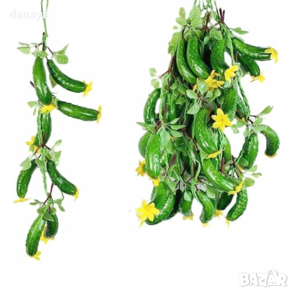 корнишони на връзка, декоративни краставици, 60 см – реалистична и ефектна декорация за дома, ресторанта или витрината. Връзката включва корнишони с дължина около 10 см, изработени от висококачествен стиропор, които придават естествен и свеж вид. Подходящи са за различни аранжировки, декор на кухни, заведения или тематични събития.