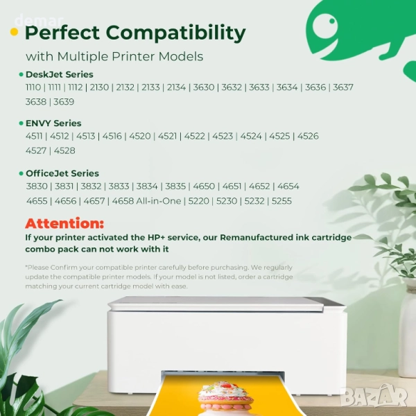 Съвместима с широка гама от модели Deskjet, ENVY и OfficeJet, тази мастилена касета предлага висок капацитет с до 700 страници на черна касета, спестявайки разходи за редовните потребители. Тя разполага с подобрен чип за проследяване на мастилото в реално време, осигурява ясен текст и ярки цветове с бързосъхнещо мастило, предотвратяващо размазване, и осигурява лесен монтаж без инструменти. Всяка касета е тествано за качество за плавен поток на мастилото, точно разпознаване и постоянна, надеждна работа.