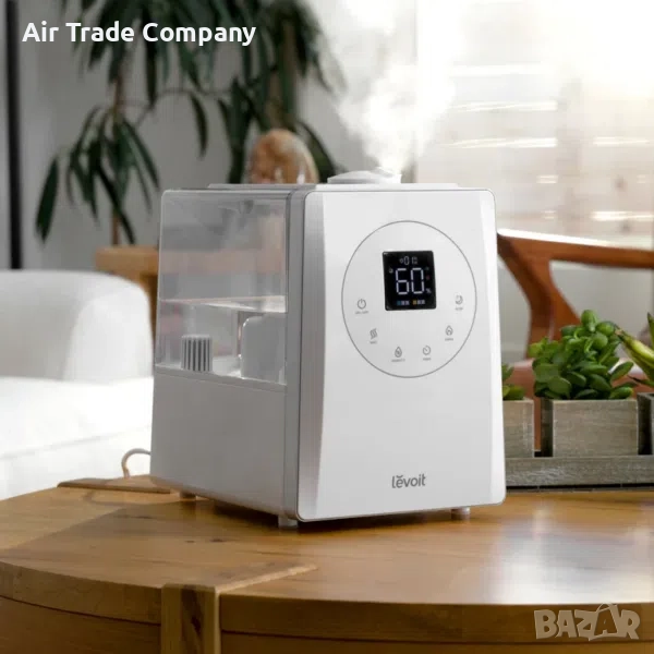 Levoit LV600S използва ултразвукова технология с честота 2.4 MHz, която превръща водата във фина мъгла с размер на капчиците едва 6 микрона. Благодарение на това влагата се задържа във въздуха, без да оставя следи по повърхностите.