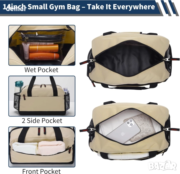 Тази компактна пътническа чанта е одобрена за употреба в кабината на повечето авиокомпании и е проектирана с водоустойчив джоб за отделяне на мокрите предмети от сухите. Тя разполага с множество отделения, включително заключващи се вътрешни, външни и мрежести странични джобове за организирано съхранение. Изработена от издръжлив 600D полиестер, тя е устойчива на дъжд, разливане и интензивна употреба, с подсилени шевове и подплатена презрамка за удобно носене. Лека, но здрава, тя е подходяща за фитнес, спортна, плажна или нощна чанта и е лесна за почистване след употреба.
