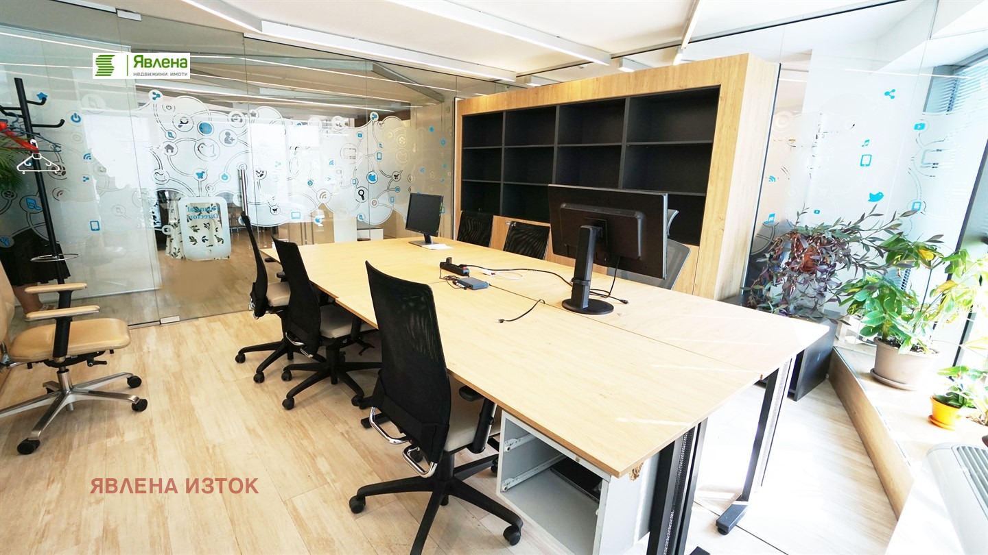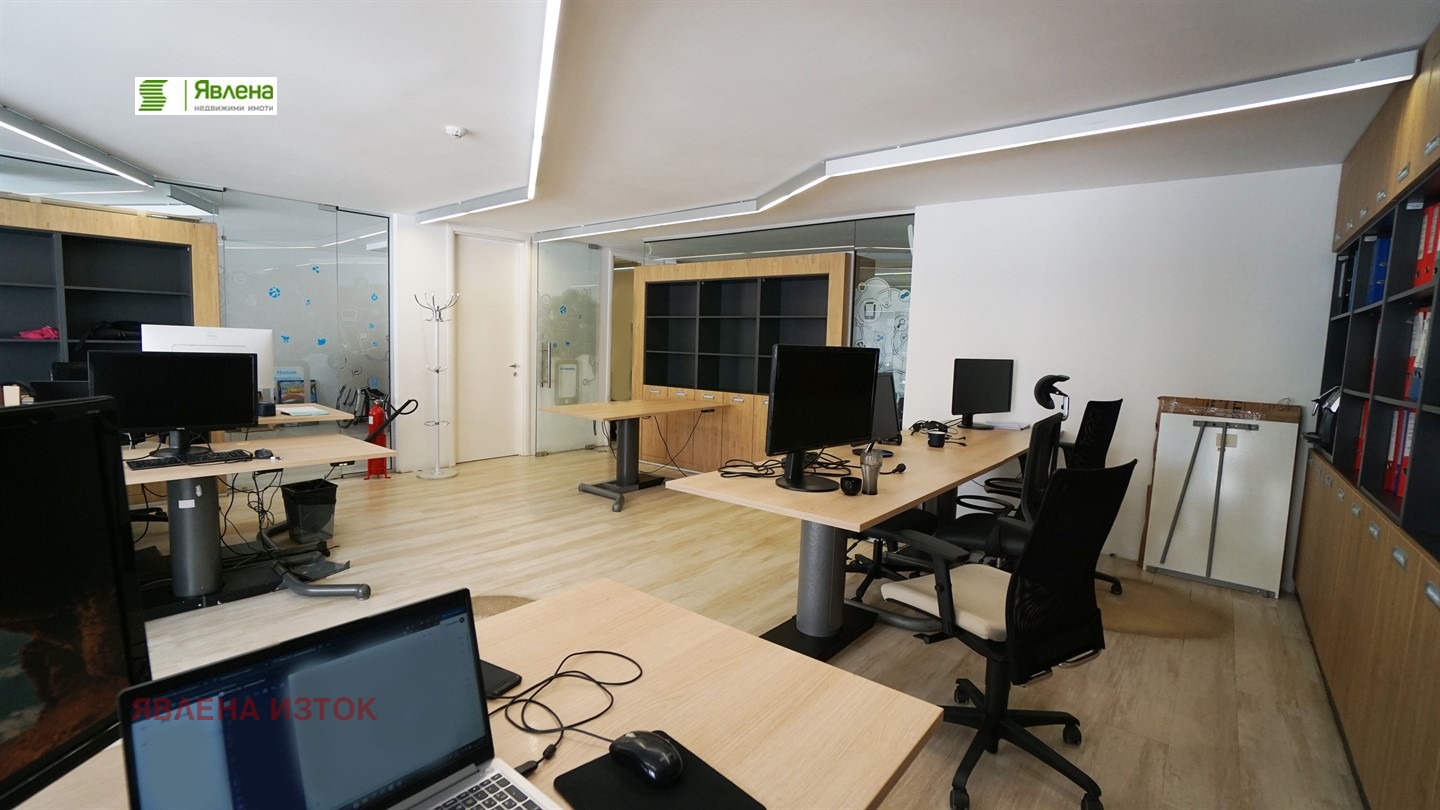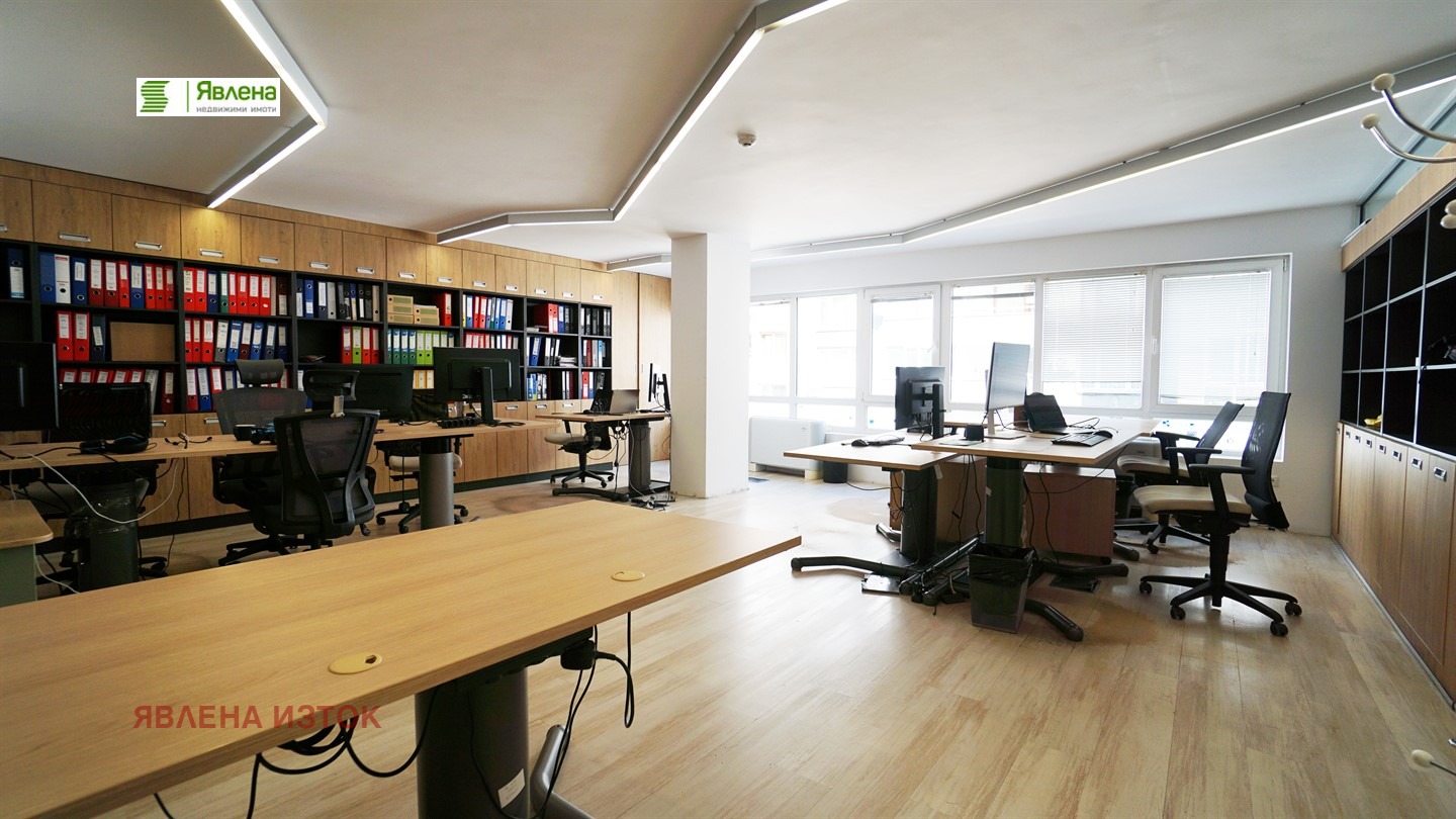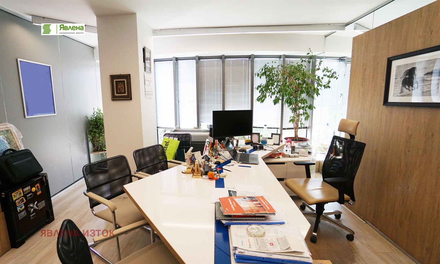 Офисът, който предлагаме разполага с представително предверие и приемна, девет просторни и светли работни помещения с капацитет 40 работни места, две заседателни зали, удобна кухня, климатизирано сърварно помещение и четири сервизни помещения. Обзаведен е с висок клас мебели произведени по поръчка и качествено професионално оборудване. Сградата е с охрана и контролиран достъп до всеки етаж. Има възможност за наемане на паркоместа в подземен паркинг.