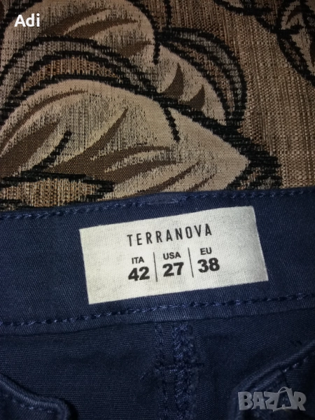 Дънките са нови, ластични, с вталена кройка. Цвят: тъмносин. Марка: Terranova.