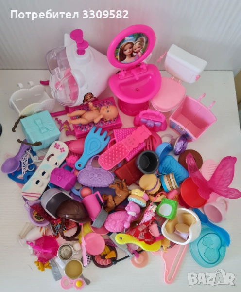 Много дребни играчки за кукли, дрехи, за кухня и др.