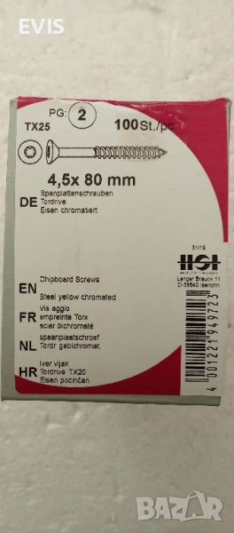 Предлагам качествени хроматирани винтове за дърво размер 4.5х80 мм с торкс захват. Хроматираното покритие е по-добро и по-устойчиво от стандартното поцинковане – гарантира по-дълъг живот, по-висока устойчивост срещу корозия и надеждно захващане при работа. 📦 Налични опаковки: 100 броя