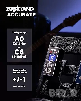 Широкообхватен тунер: Диапазонът на настройка е A0 (27.5 Hz) ~ C8 (4186 Hz). Нов бърз и точен режим на стробоскоп с точност от +/- 1 цент.