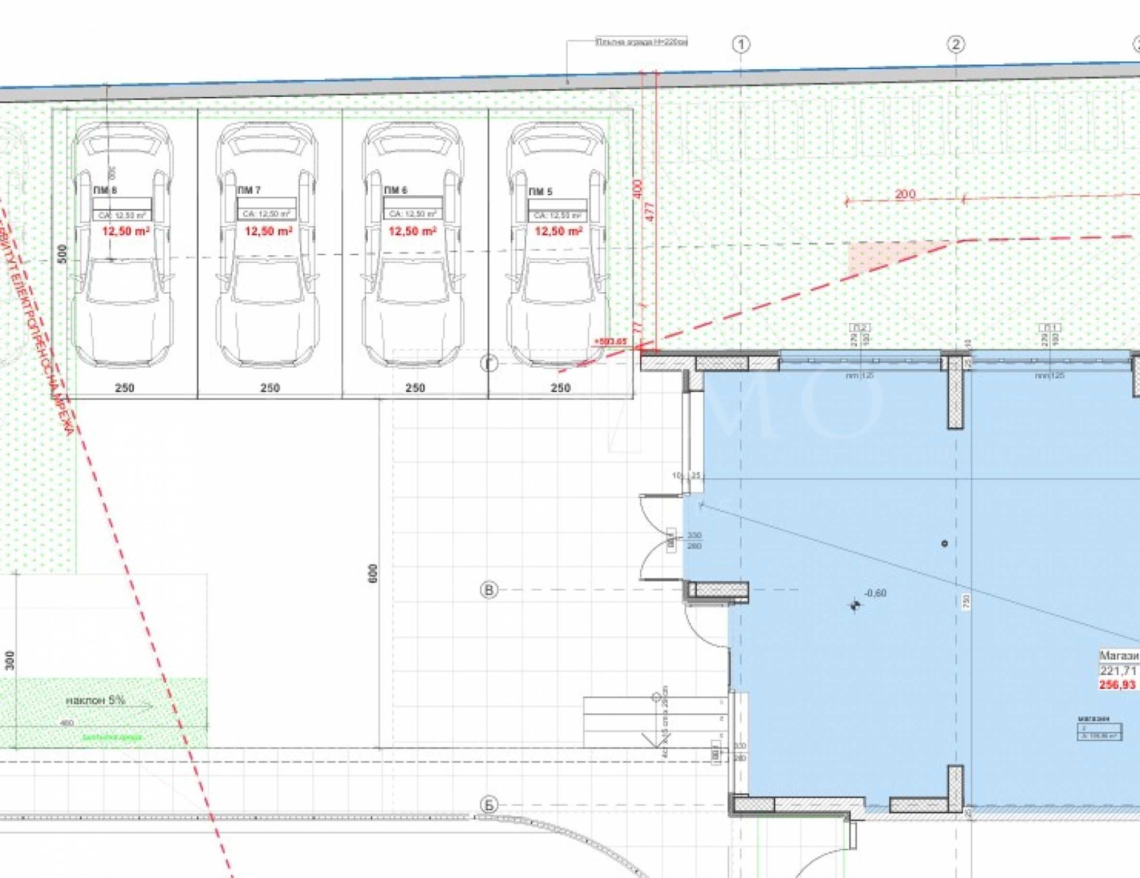 Има възможност за закупуване на 4 бр. паркоместа към магазина, на цени от 20 000 евро (39 116.60 лв.) без ДДС всяко.