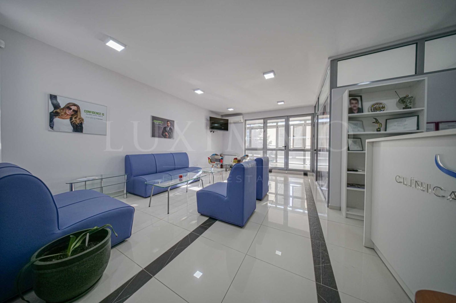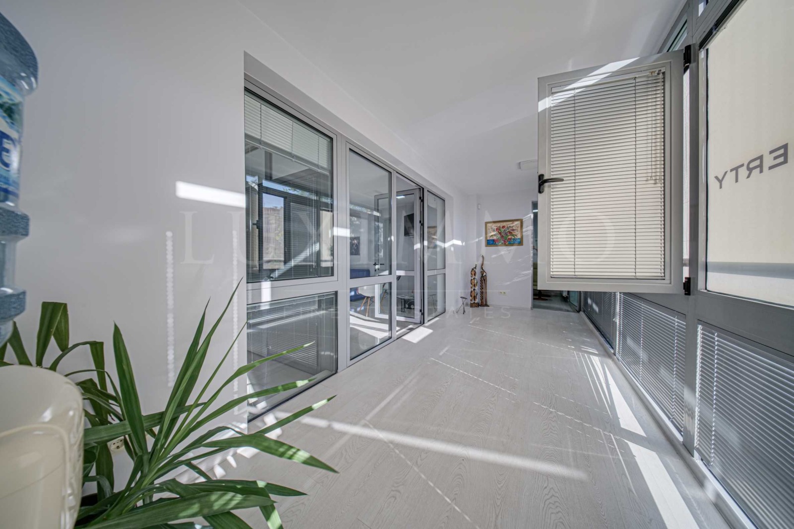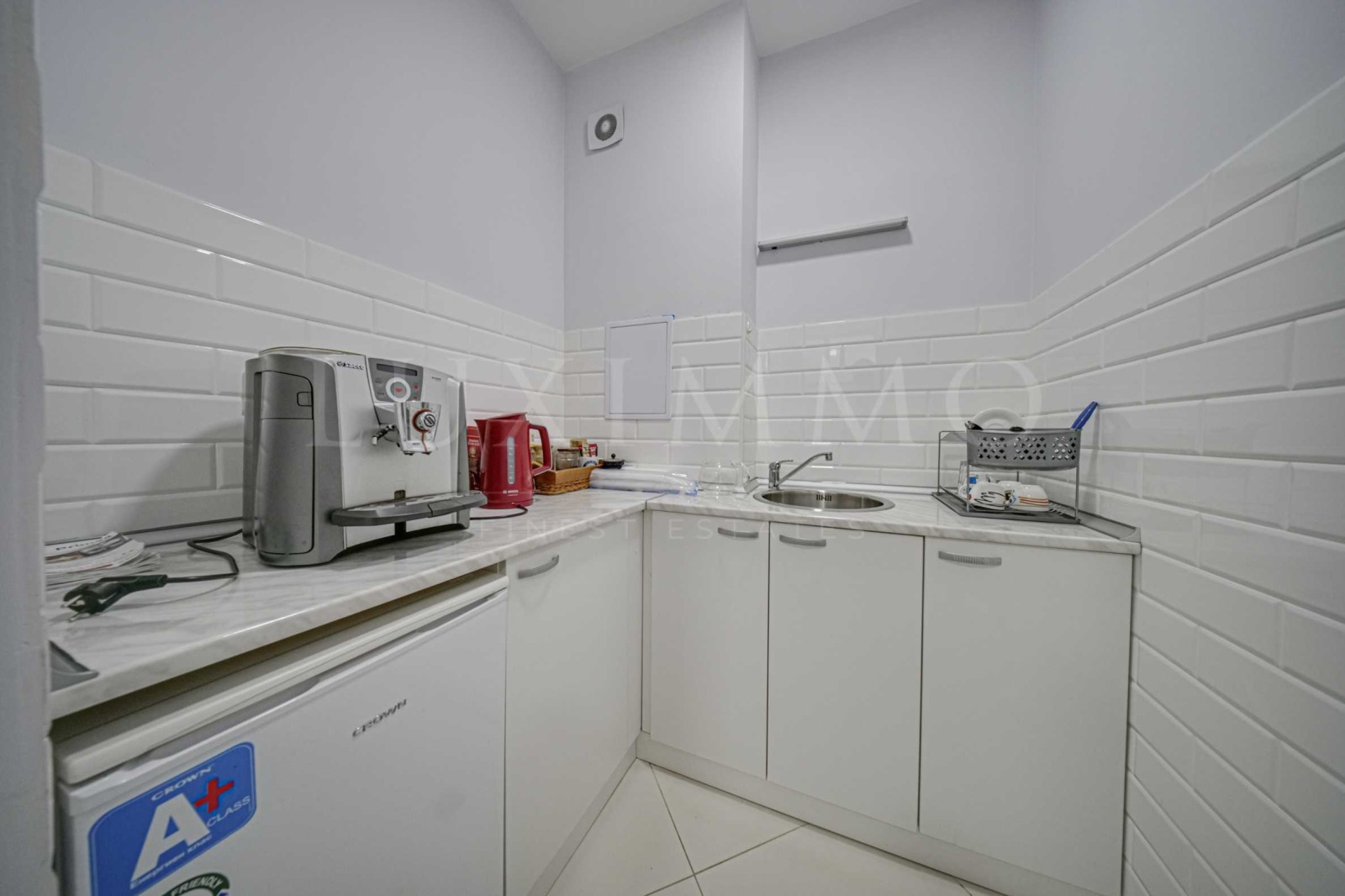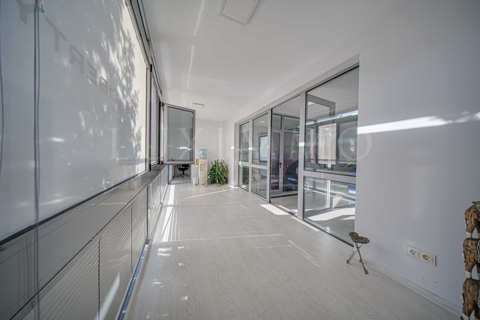 Офисът се намира на първи надпартерен етаж с площ 139.04 кв.м. Изложението е югозапад с панорамна гледка към улица Проф. Кирил Попов Предлага се луксозно завършен с качествени материали: