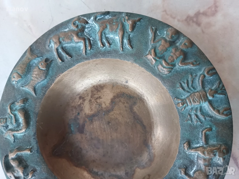 Масивен бронзов пепелник със зодии. Диаметър - 16 см., тегло- 700 гр.