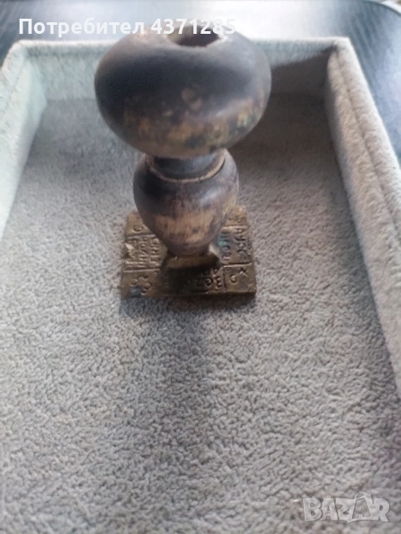 печат за хляб/просфорен/стар(бронзов) с дървена дръжка → Обява 51724944