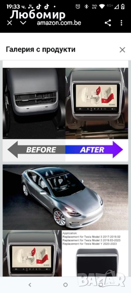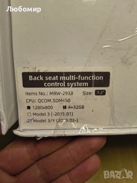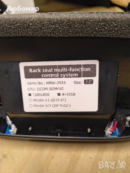 7.2-инчов екран за задните седалки за Tesla Model 3Y 4GB 32GB LCD сензорен екран HD 1280x800 IPS