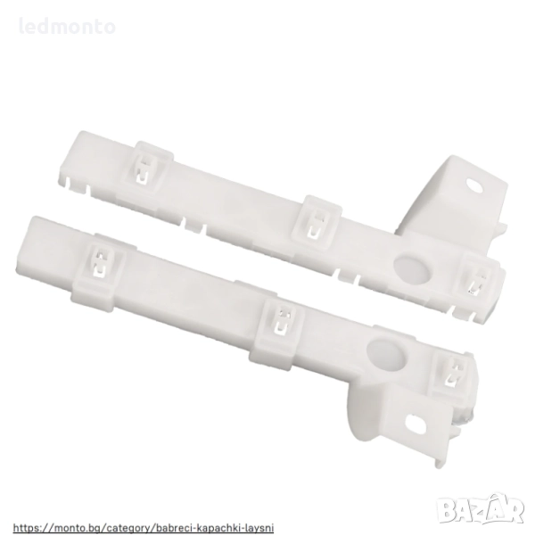 Комплект скоби за предна броня, OE кодове 6400F549, 6400F550, 6400C369, 6400C370. Изработени от висококачествен ABS, устойчиви на удари и износване. Лесен монтаж, директен заместител. Включва чифт (лява и дясна). Поръчайте от monto.bg за бърза доставка с наложен платеж и преглед.