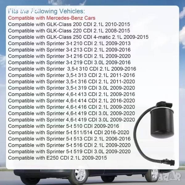 - Mercedes-Benz Sprinter 2.1L/3.0L (2006–2020)
